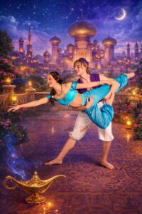 V hlavních rolích se Vám předvedou jako Jasmína Karolína Čerešňová a jako Aladin – host Státní pražské taneční konzervatoře Ladislav Grolla.
